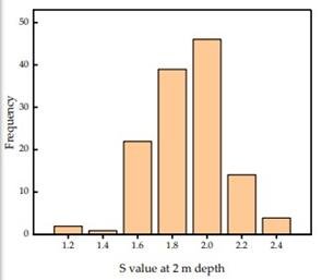 Figure 4: Frequency distribution chart for S value at a depth of 2 m