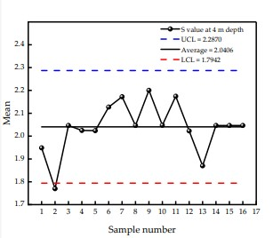 Observing Table 2 reveals that, with an increase in drilling depth, both S and K1 values exhibit an initial rise followed by a decline. This trend is associated with the stress state ahead of the working face, providing validation for this theory. Through the SPC control chart and frequency distribution analysis of the data above, the control upper limit of an individual index, as derived from the control chart, holds a degree of representativeness and serves as a valuable reference, defining the sensitivity value of that single index. When any index surpasses its respective control limit during actual drilling operations, heightened vigilance and appropriate measures are necessary to prevent outbursts. Throughout this process, the statistical upper limit index is determined using the SPC control chart method, offering a profound understanding of the risk level at each drilling depth. This approach shifts away from the scenario where a critical value encompasses all drilling depths.