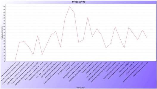 Productivity in PSP is quantified by the number of Lines of Code (LOC) developed per hour. As depicted in Figure 6, the average productivity exhibited a positive trend, escalating from 30 LOC/Hr. in the initial program to 40 LOC/Hr. Additionally, a distinction is noticeable between less complex modules, elevating productivity to over 50 LOC/Hr., and more intricate ones maintaining productivity up to 40 LOC/Hr. An exception is observed in the CI search filter module, registering a productivity rate close to 90 LOC/Hr. This anomaly is attributed to alterations in user requirements during the design stage. Productivity serves as a valuable self-assessment tool upon project completion, facilitating the determination of process improvement.