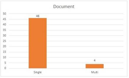 Given that there are two types of Text Summarization based on input type—Single and Multi-Document Summarizations—Figure 7 indicates that 46 papers focused on Single Document ATS, while 4 were centered on Multi-Document ATS. The majority of researchers concentrated on summarizing a single input document.